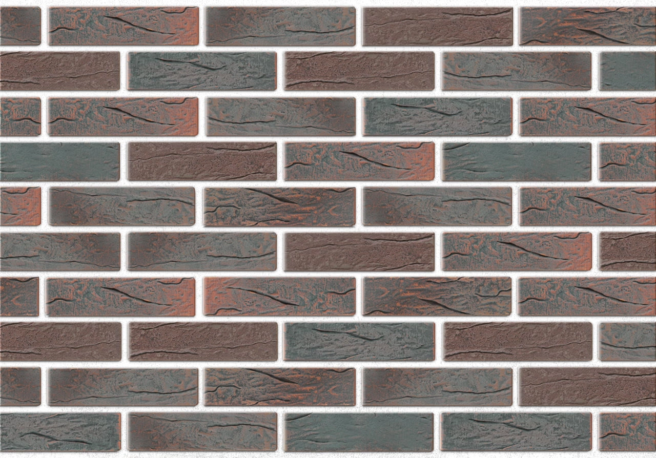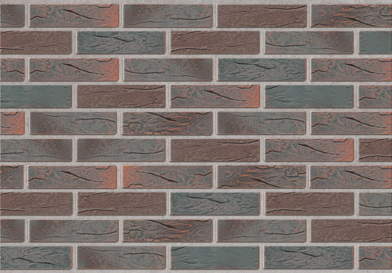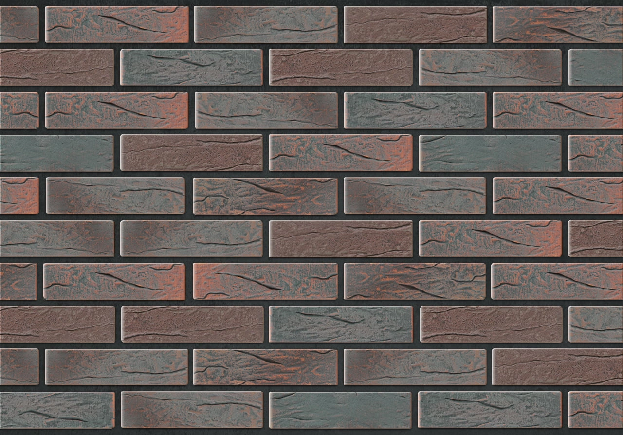 Необычный серо-черно-фиолетовый цвет и рельефная лицевая поверхность. Производится из смеси красножгущейся глины и песка с торкретированием лицевой поверхности натуральными минеральными компонентами по технологии редукционного-flash обжига.