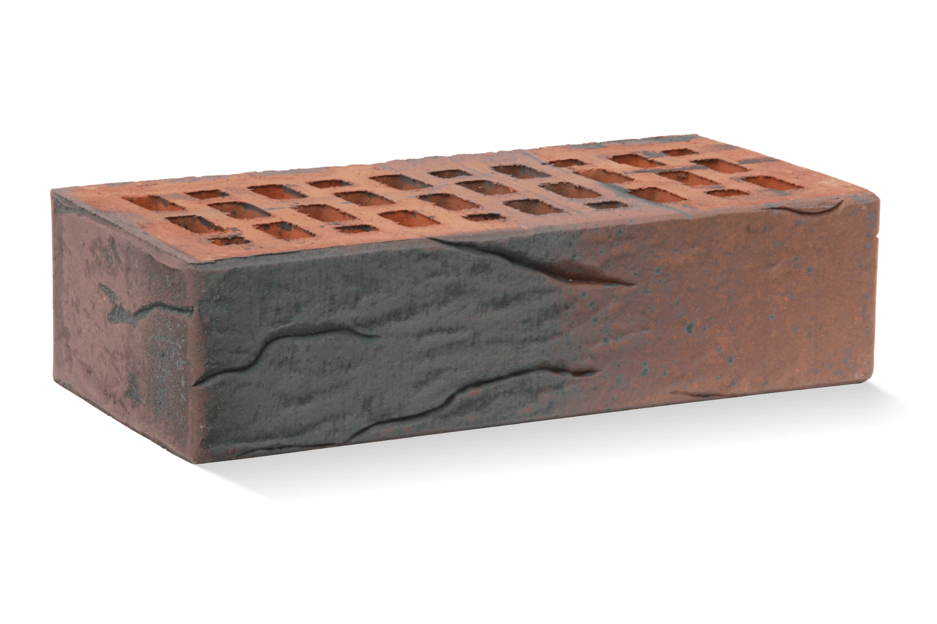 Неповторимый серо-черно-фиолетовый пестрый цвет и рельефная лицевая поверхность. Производится из смеси красножгущейся глины и песка с торкретированием лицевой поверхности натуральными минеральными компонентами по технологии редукционного-flash обжига.