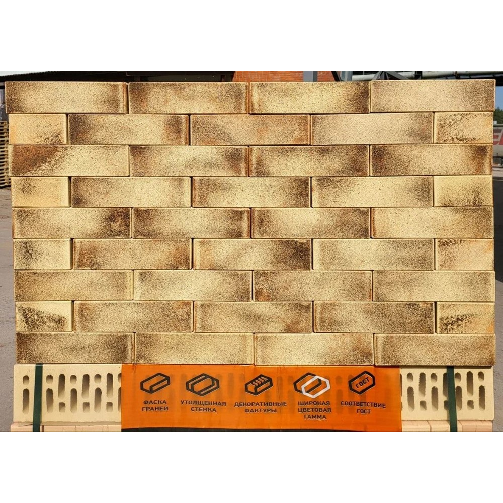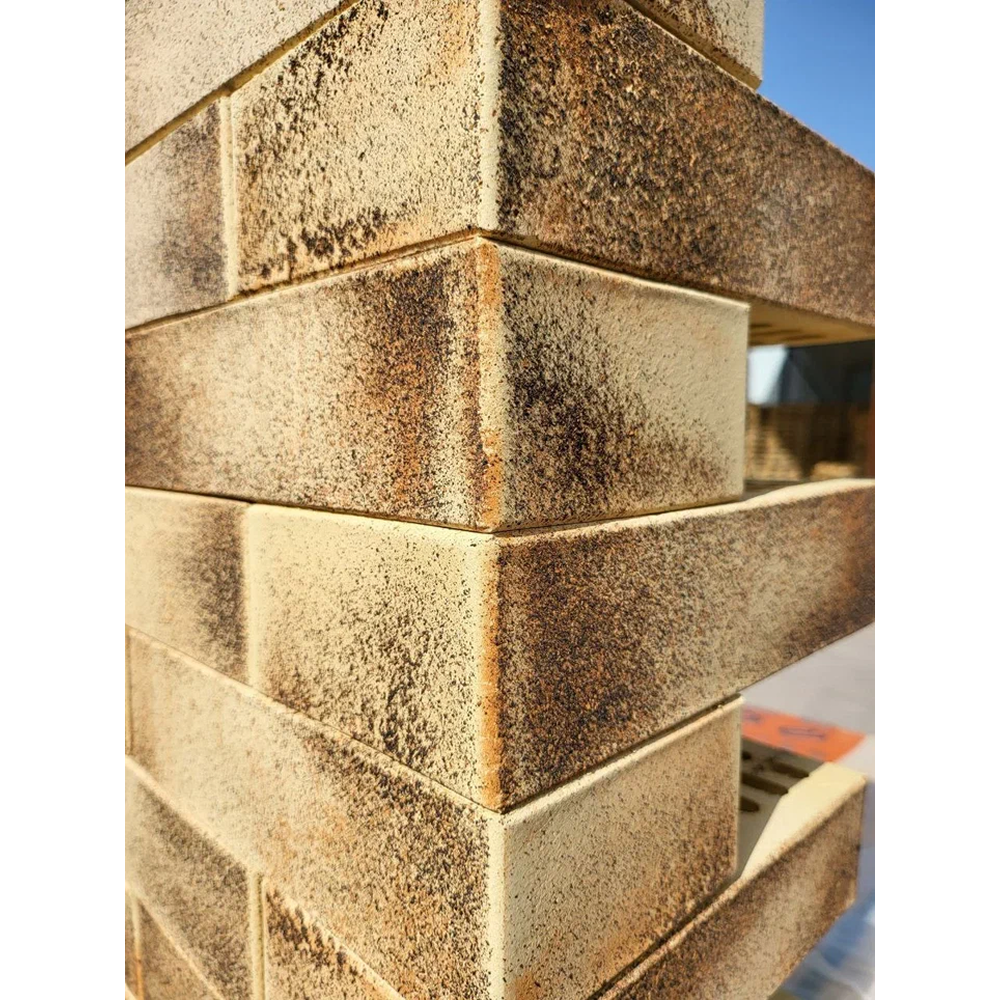 Для создания кирпича ТМ «Строма Дизайн» производитель уделил внимание выбору цветовой палитры, комбинации оттенков и формированию объемного рисунка с дополнительным инкрустированием / торкретированием. В процессе производства нанесенный на сырец декор обжигается и прочно спекается с керамической офактуренной основой кирпича, гарантируя облицовочному материалу долголетие и устойчивость к внешнему воздействию.